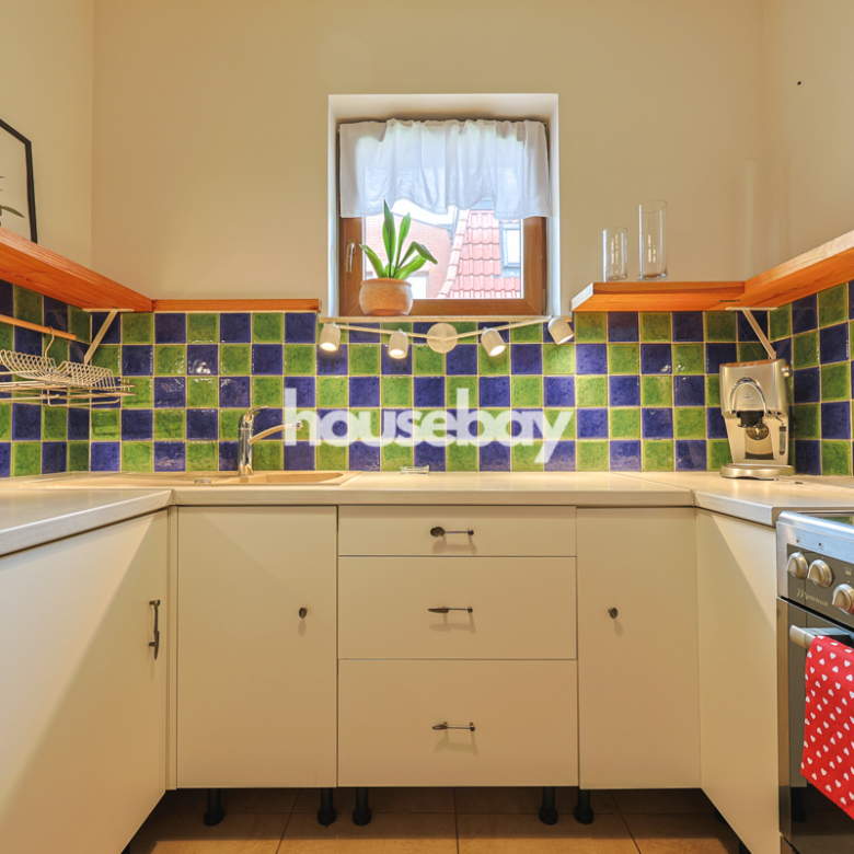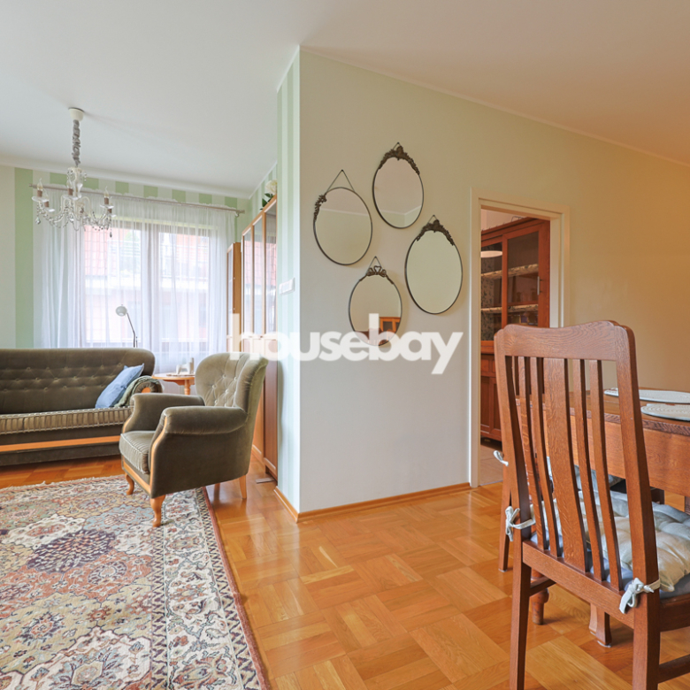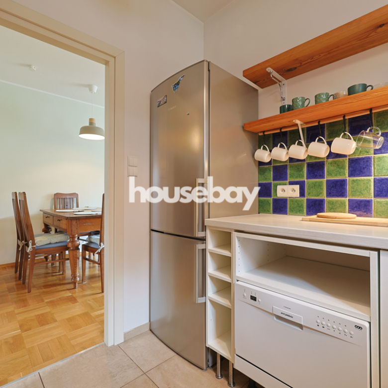 Apartament znajduje się na terenie kameralnego osiedla składającego się z trzech dwupiętrowych budynków w spokojnej i zielonej dzielnicy Aniołki, blisko GUMed. Osiedle jest ogrodzone i monitorowane. Apartament znajduje się na 1 piętrze.